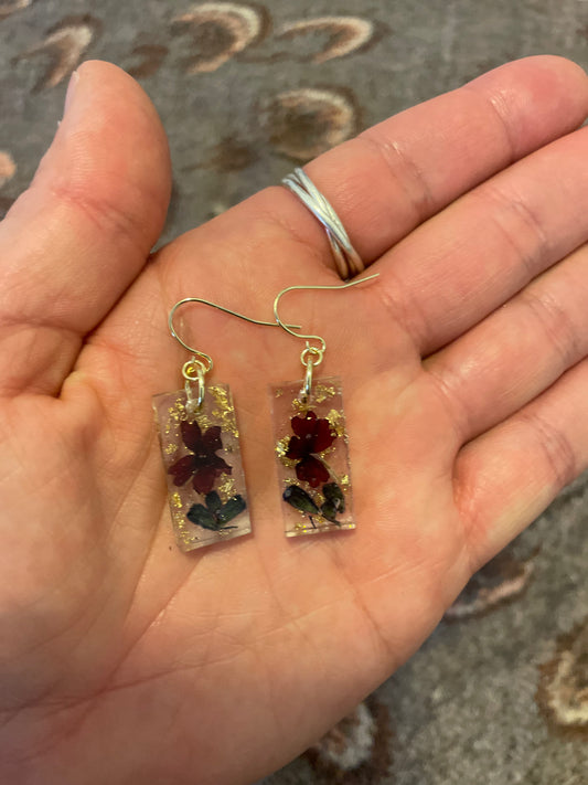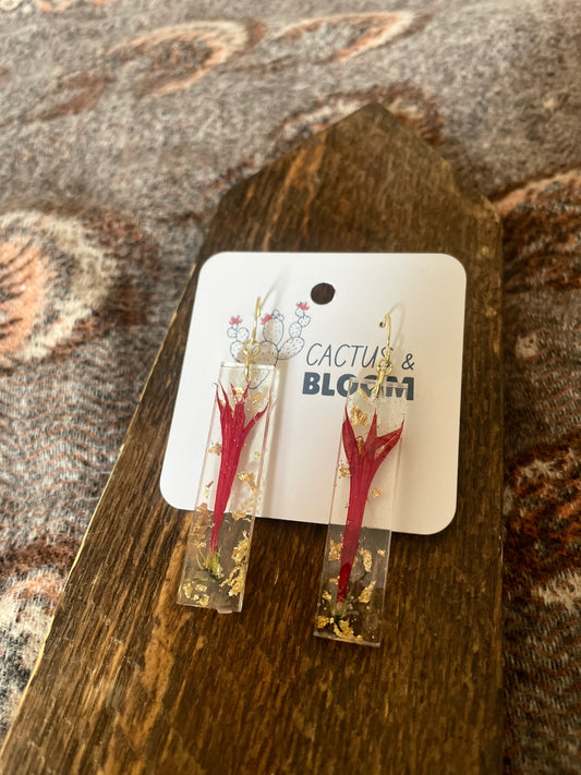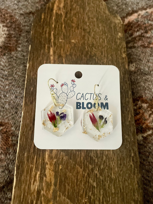 Cholla Cactus Wood and Pressed Flower Resin Earrings