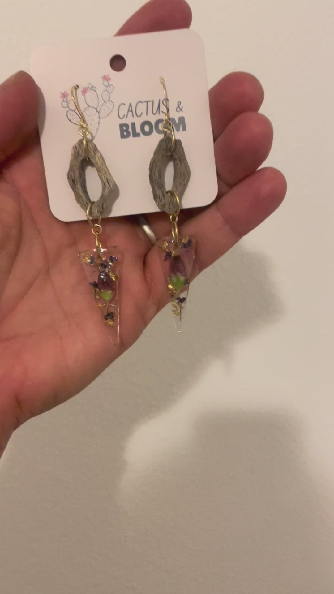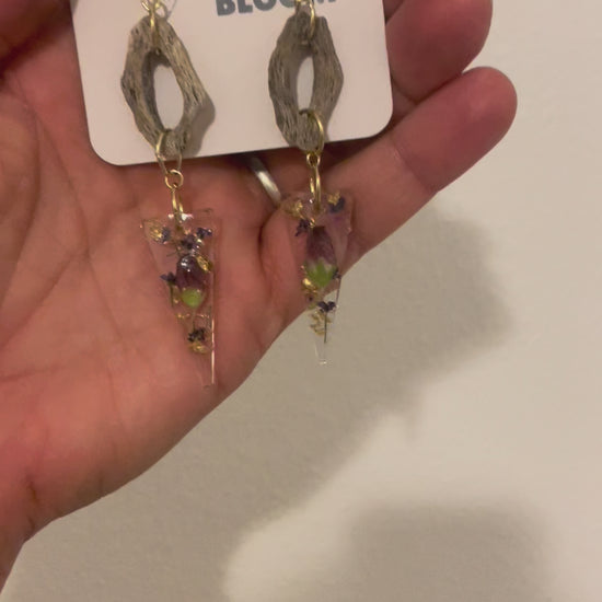 Maiden Cholla Cactus Wood and Pressed Flower Resin Earrings